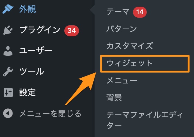 まずは管理画面のサイドメニューにある 外観 → ウィジェット
