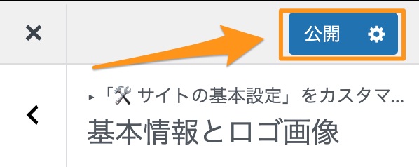 一通りサイトのタイトルやロゴなどを設定したら必ず 画面左上の「公開」ボタンを押すようにしましょう!